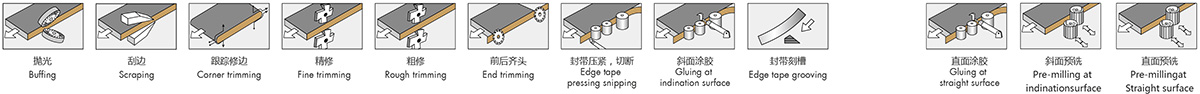 封邊帶成型:對(duì)封邊帶加工成型,便于折彎,保證粘貼質(zhì)量。